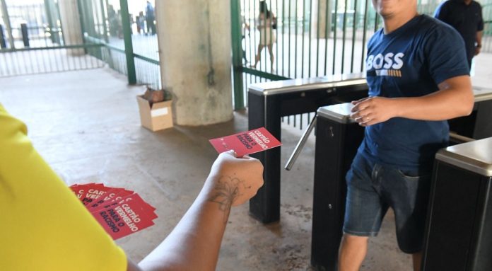 Antes do apito inicial, servidores da Secretaria de Justiça e Cidadania do Distrito Federal (Sejus-DF) distribuirão cartões vermelhos na entrada do estádio.